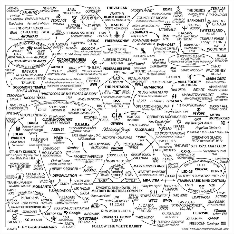 Alt-right nationalism sits in the centre of a flat world populated by ancient aliens, devil worshipping political elites, all underpinned by esoteric theories and speculation.